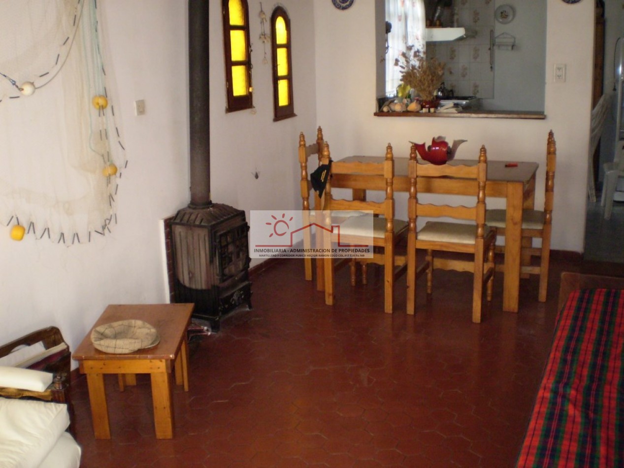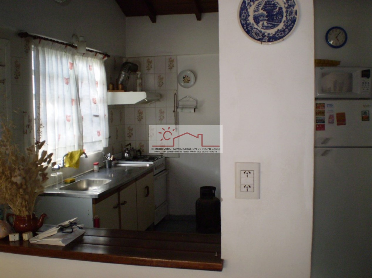 Pequeña casa a metros del mar, 2 dormitorios, 1 baño completo, cocina living comedor. El gas envasado será a cargo del inquilino.