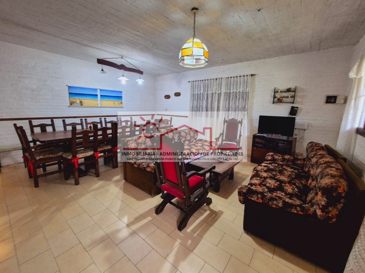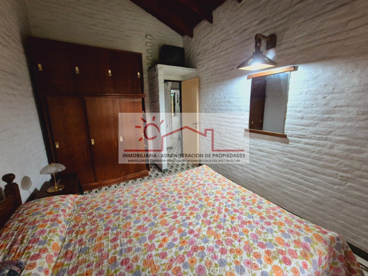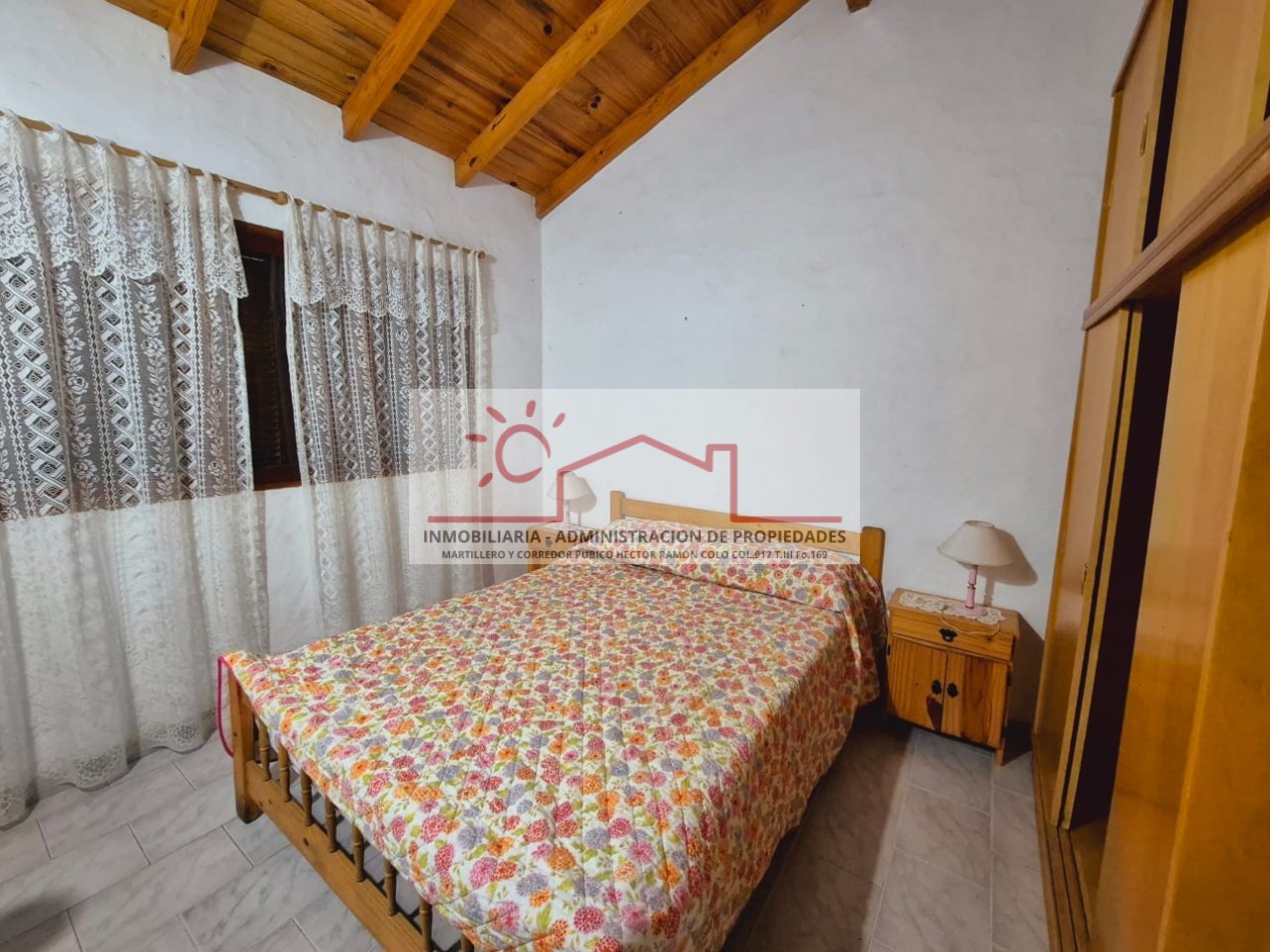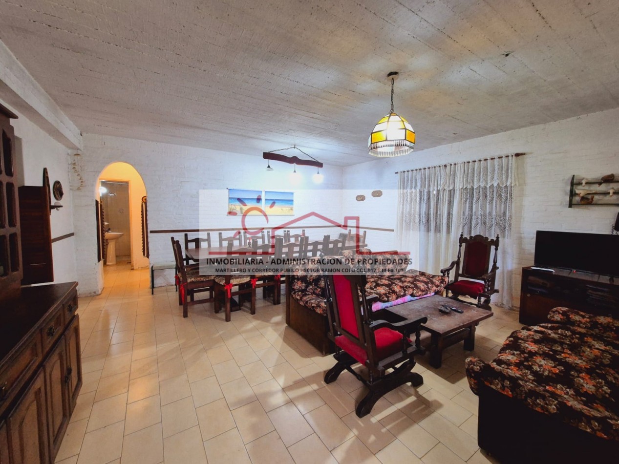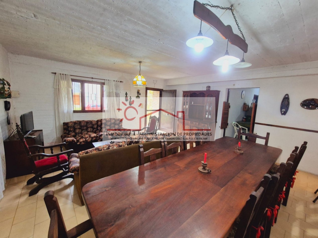 Propiedad amplia y versátil para hasta 14 personas, ideal para familias numerosas. En planta baja, con capacidad para 10 personas, dispone de 3 dormitorios (2 matrimoniales y 1 con cuchetas), 2 baños completos, y un cómodo living comedor integrado a la cocina, además de parrilla, horno de barro y ducha exterior para disfrutar al aire libre.