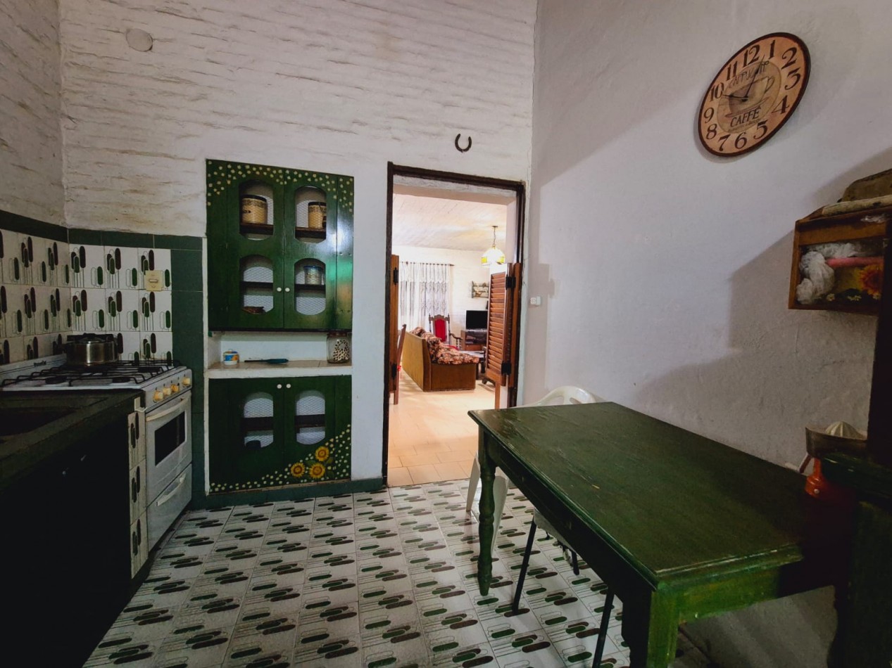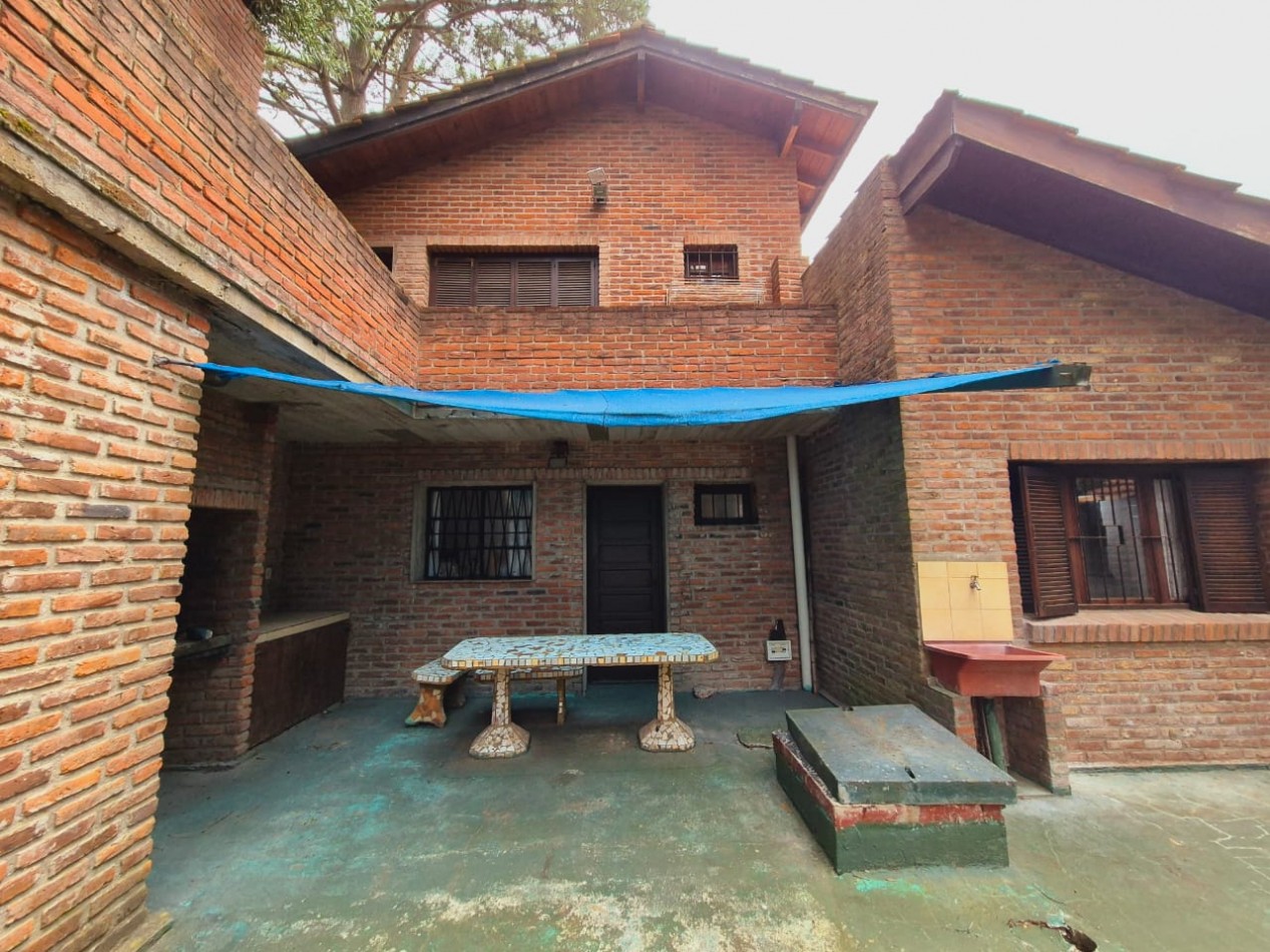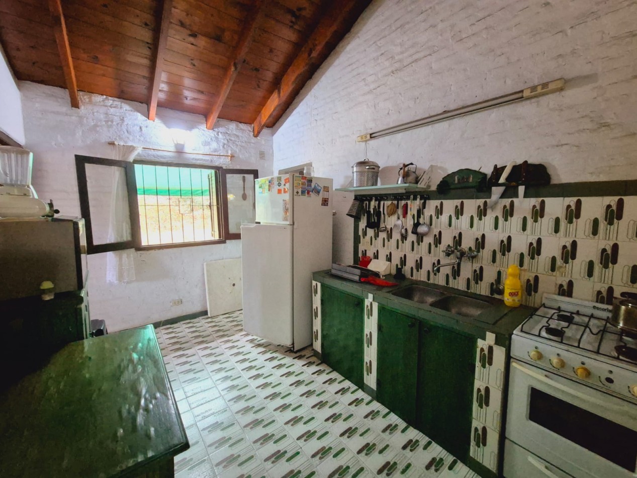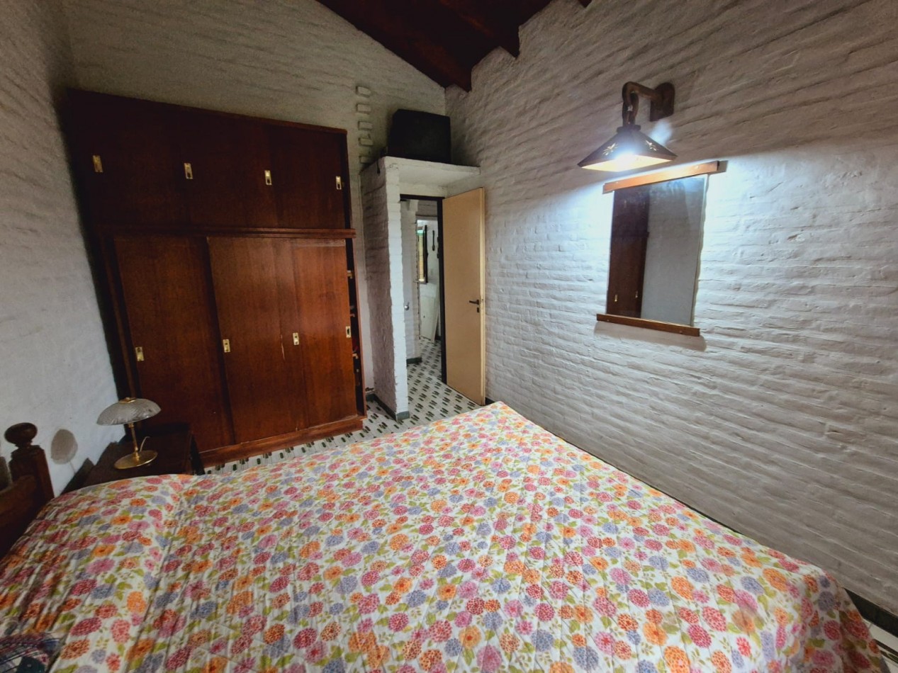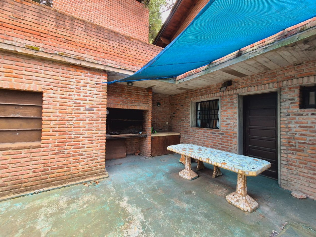 En planta baja casa de 3 dormitorios con 2 baños completos, living comedor, cocina, parrilla y horno de barro, ducha exterior en patio. En planta alta y por escalera exterior cuenta con un departamento de 1 dormitorio, 1 baño completo y coina comedor.