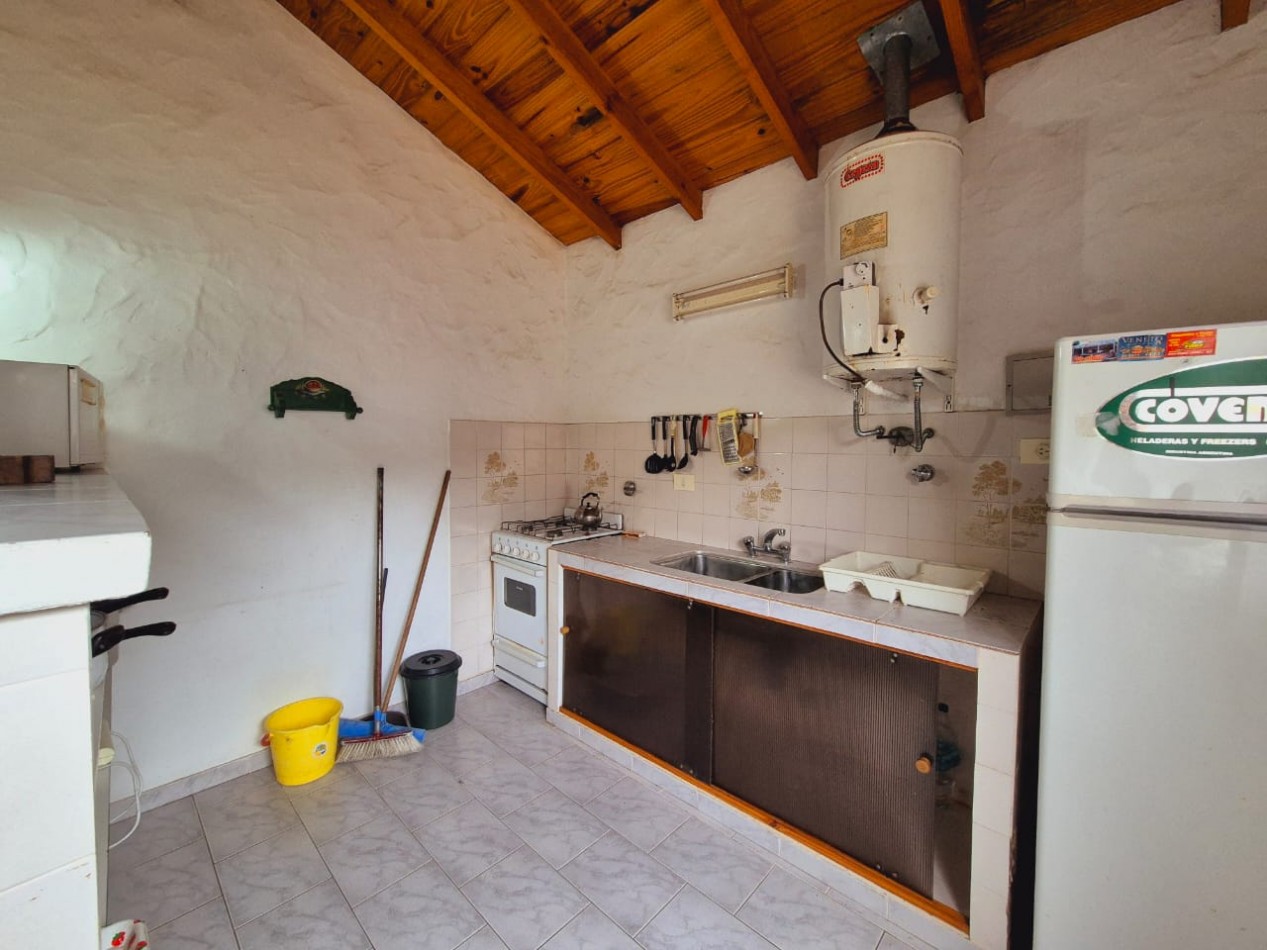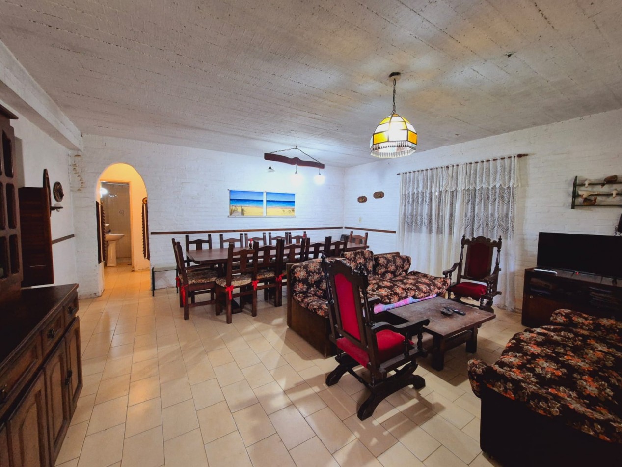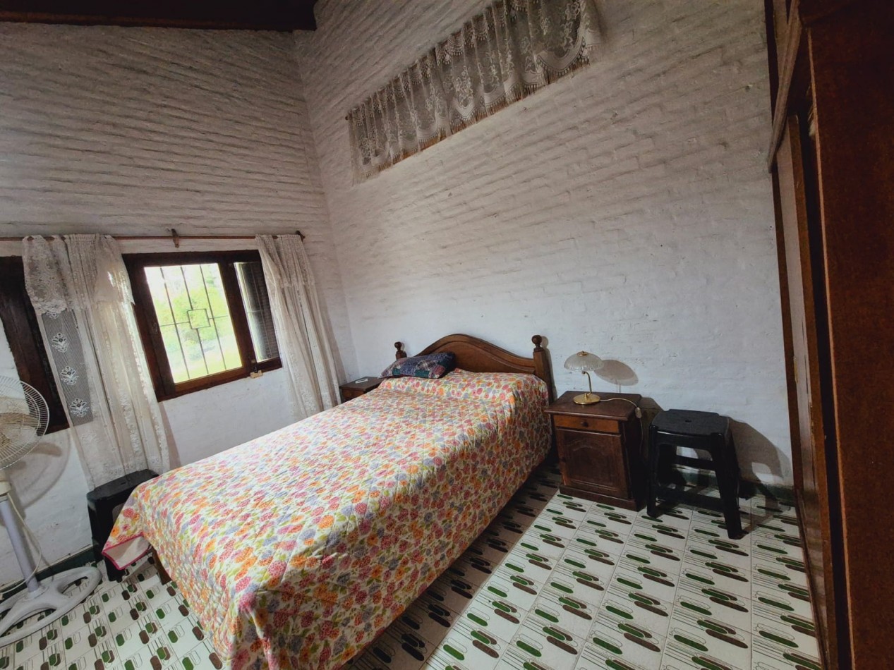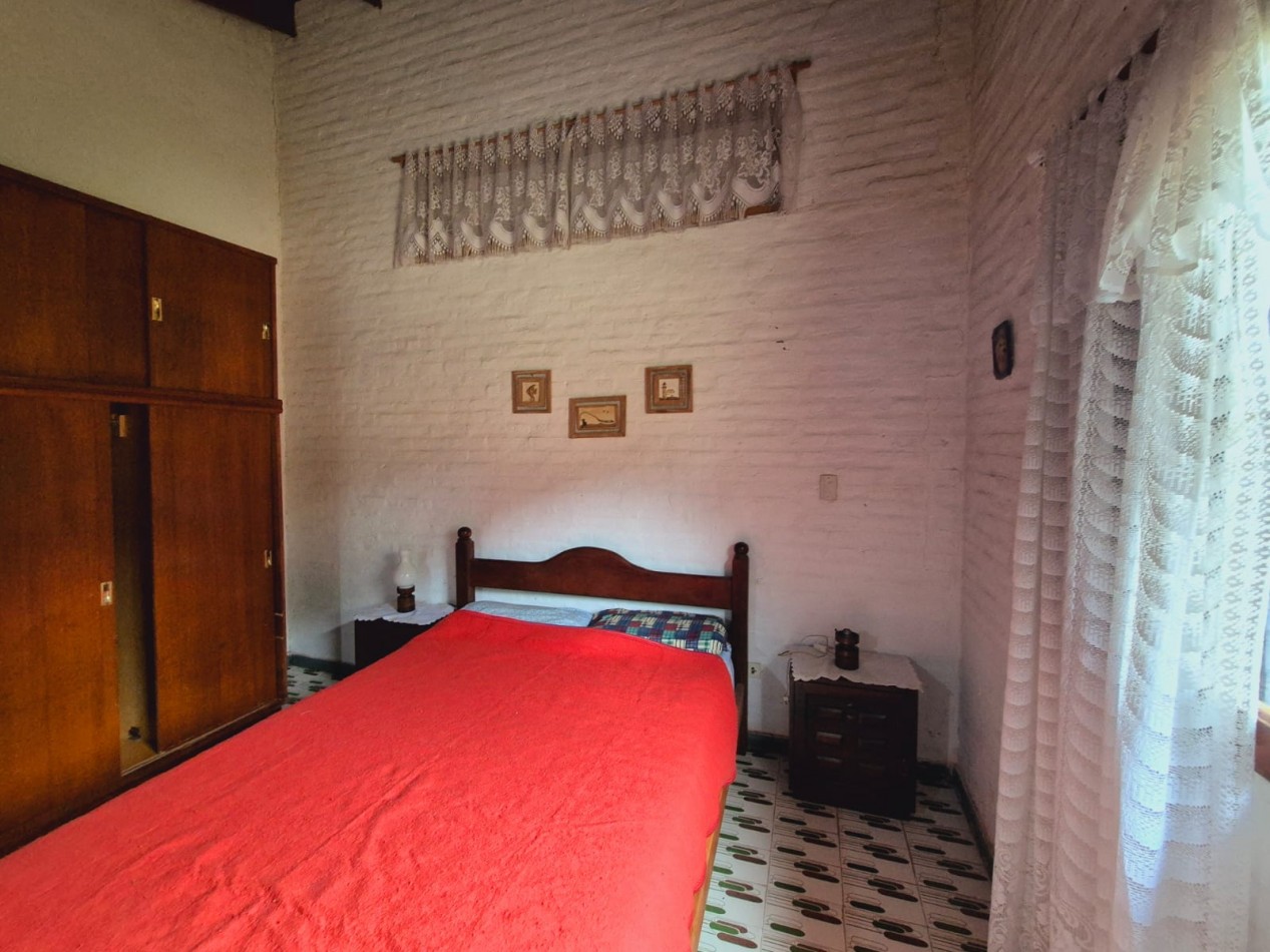 En planta baja casa de 3 dormitorios con 2 baños completos, living comedor, cocina, parrilla y horno de barro, ducha exterior en patio. En planta alta y por escalera exterior cuenta con un departamento de 1 dormitorio, 1 baño completo y coina comedor.