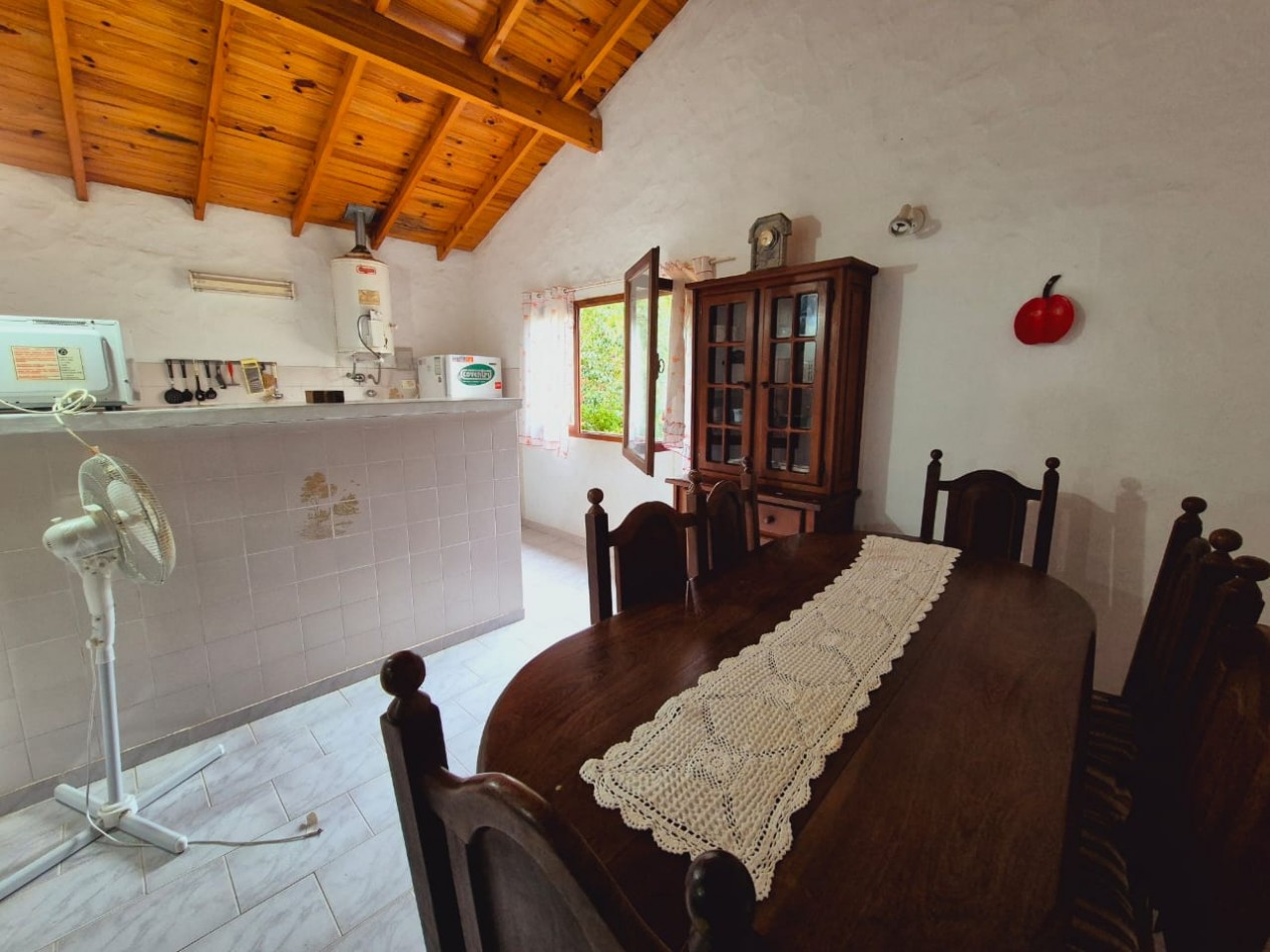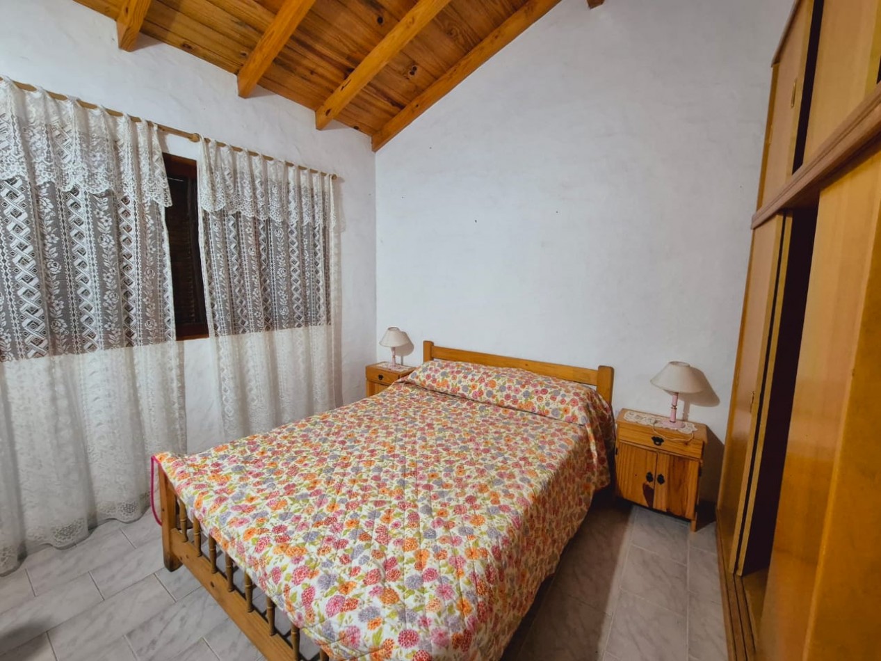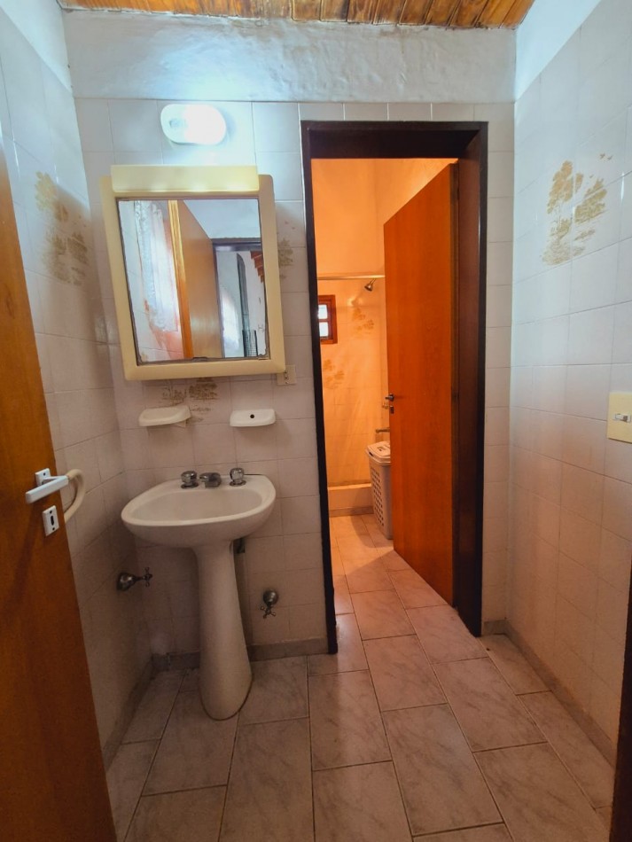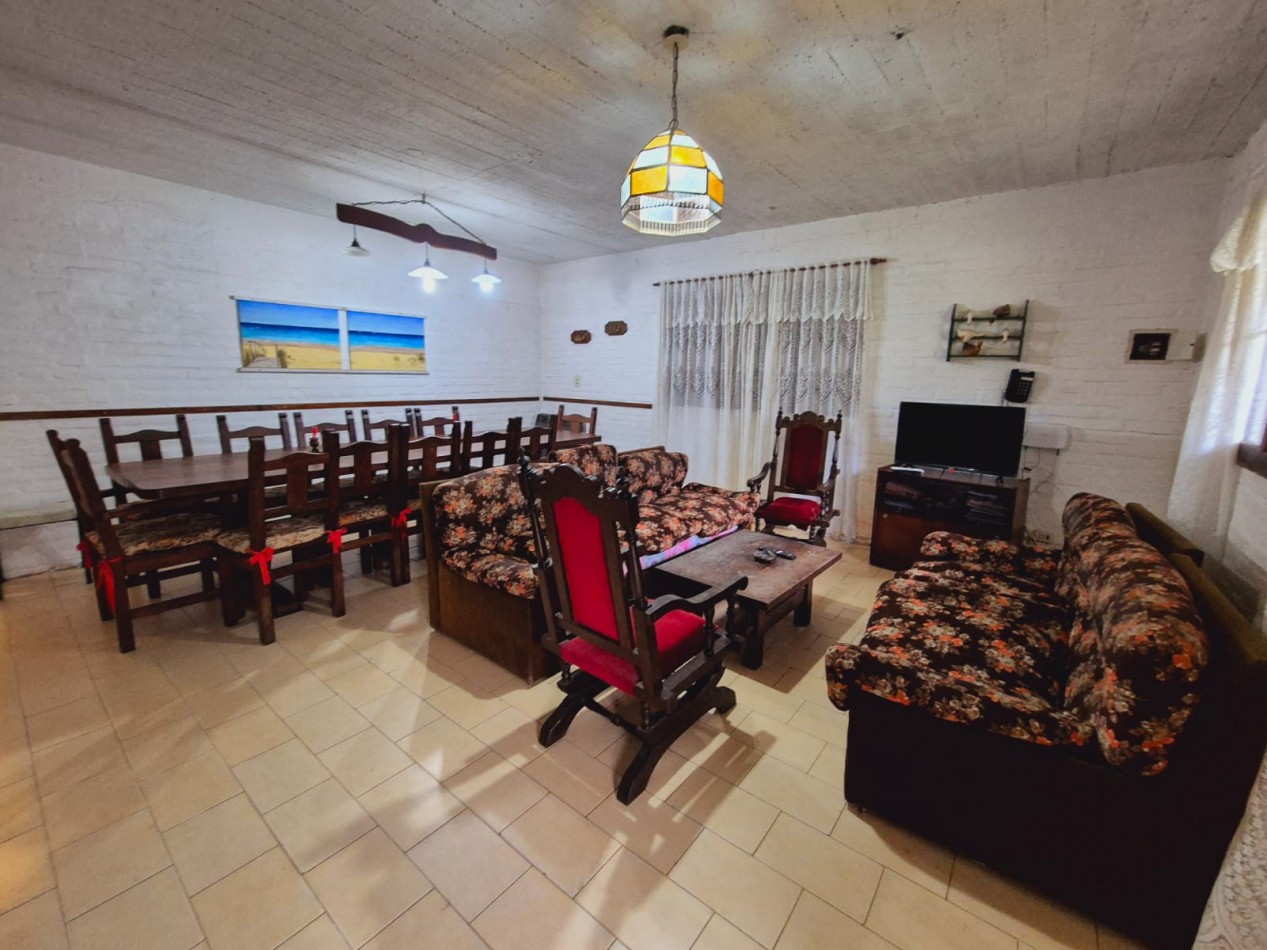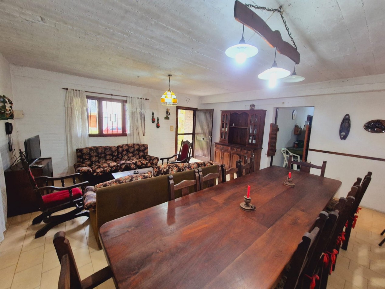 En planta baja casa de 3 dormitorios con 2 baños completos, living comedor, cocina, parrilla y horno de barro, ducha exterior en patio. En planta alta y por escalera exterior cuenta con un departamento de 1 dormitorio, 1 baño completo y coina comedor.