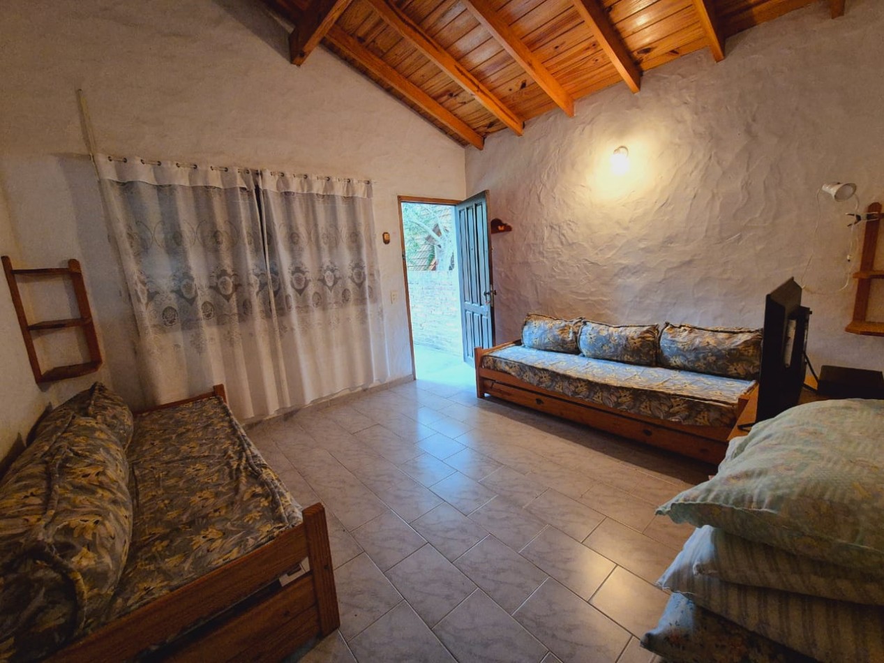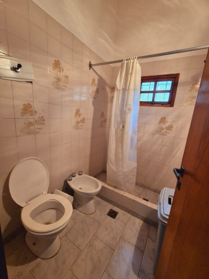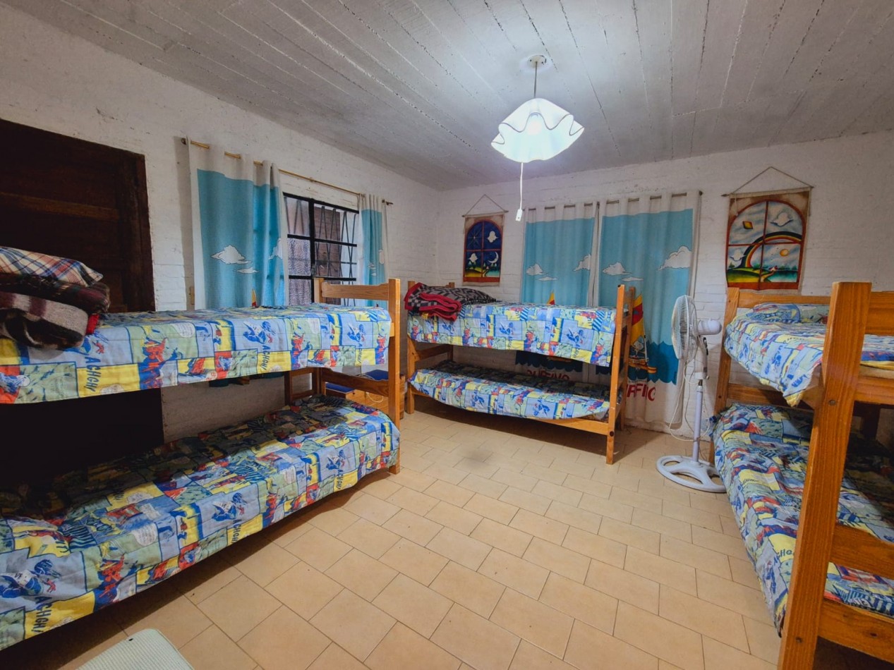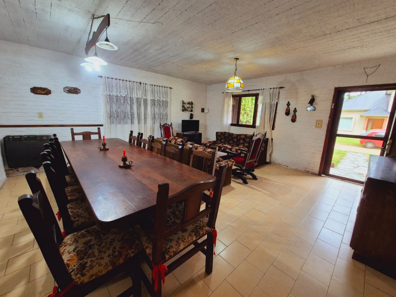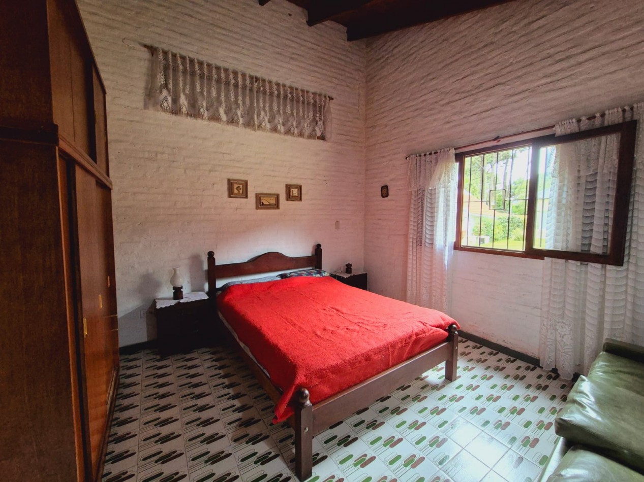 En planta baja casa de 3 dormitorios con 2 baños completos, living comedor, cocina, parrilla y horno de barro, ducha exterior en patio. En planta alta y por escalera exterior cuenta con un departamento de 1 dormitorio, 1 baño completo y coina comedor.