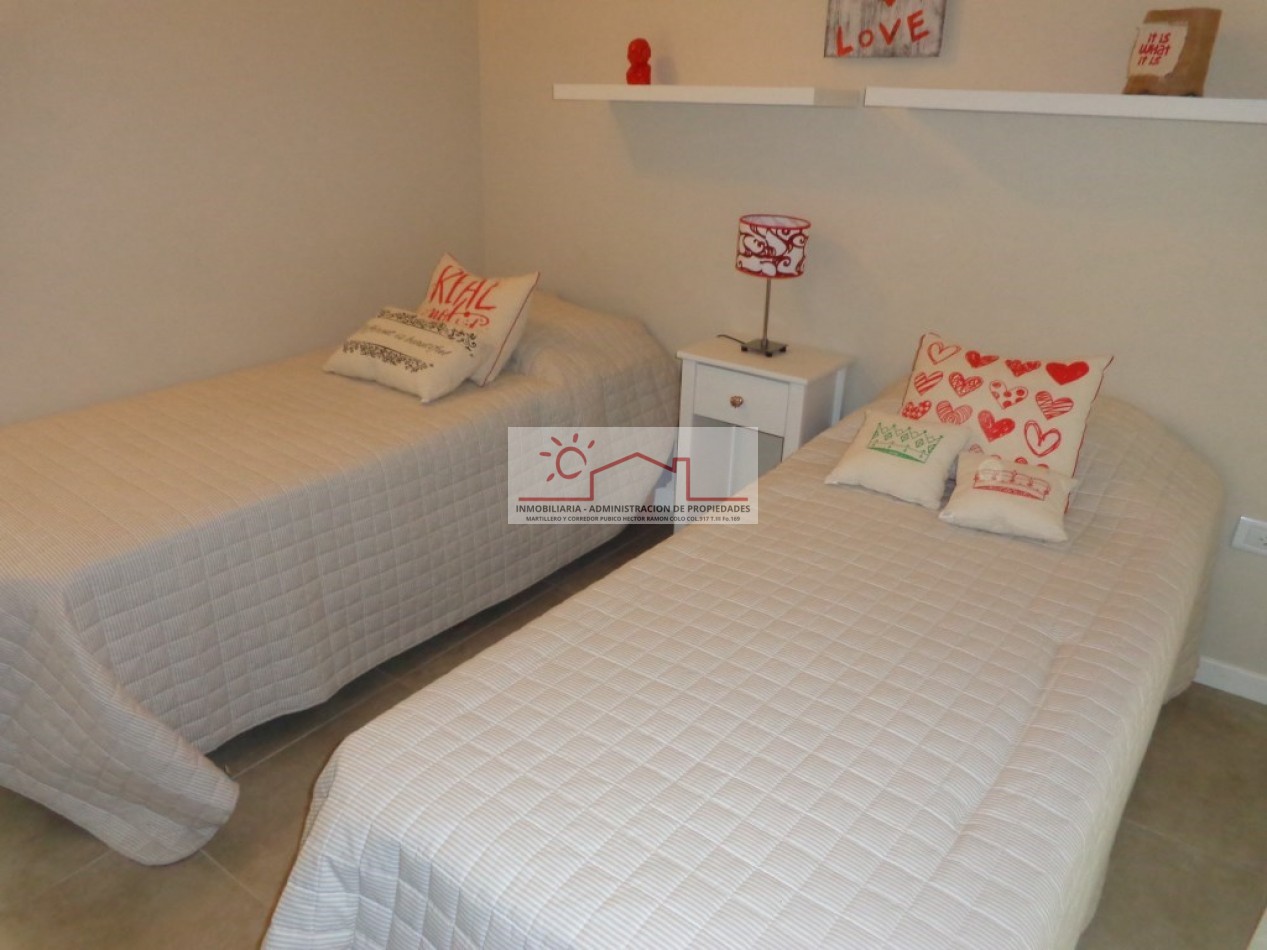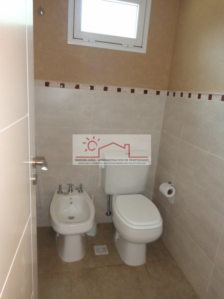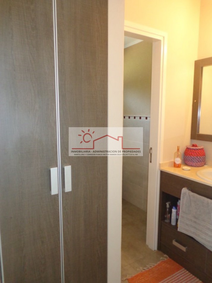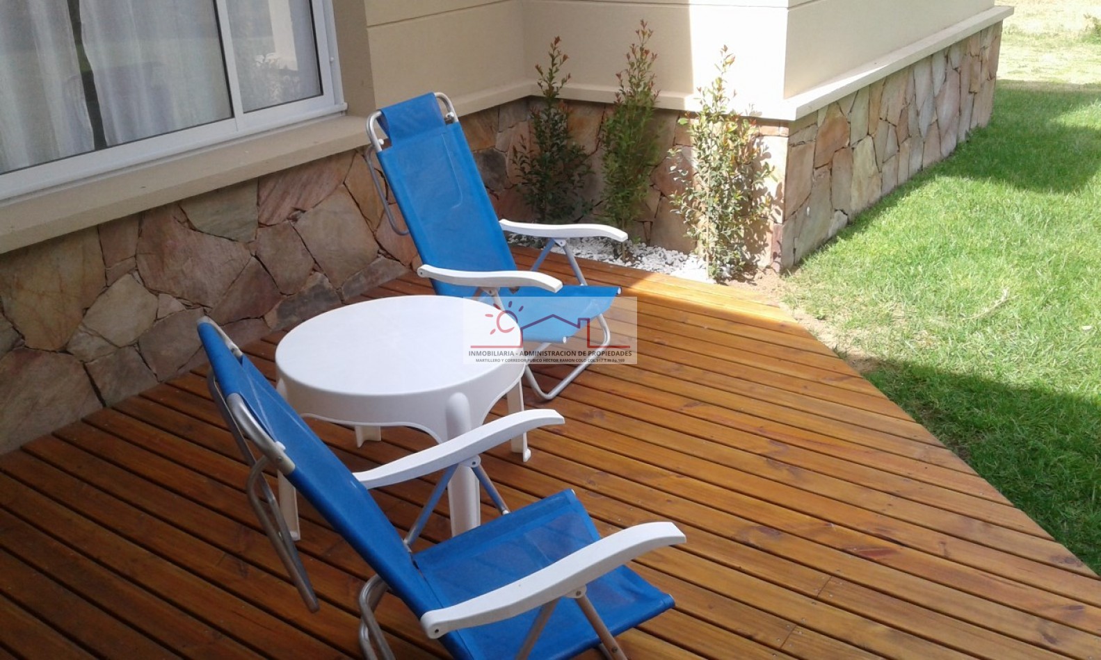 Moderna casa con 2 dormitorios (el principal en suite) mas otro baño completo en pasillo con bañera. Cocina living comedor integrados, deck exterior y galeria con parrilla.