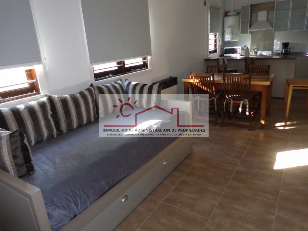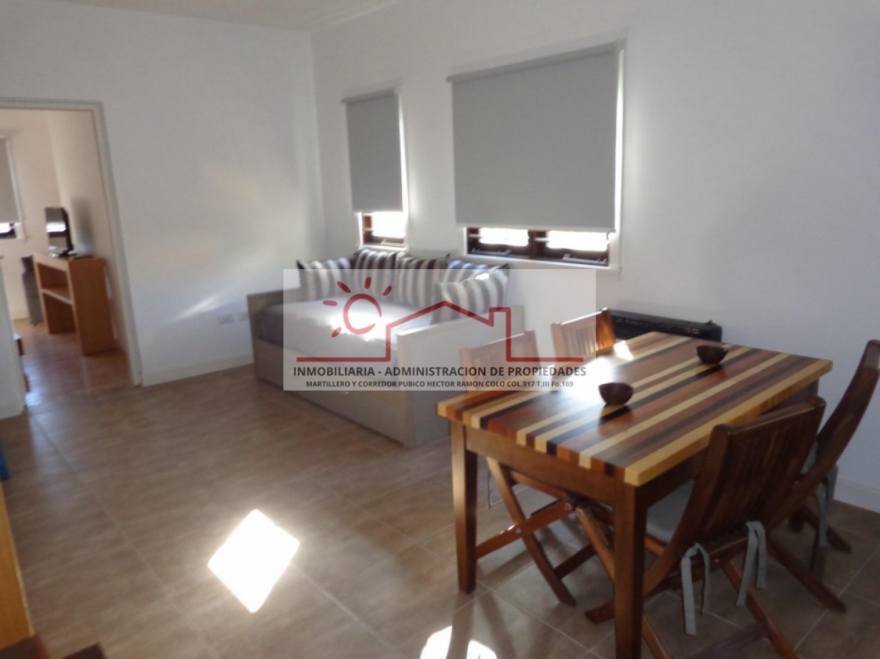 Excelente departamento de 2 ambientes, ideal para una estadía confortable. Cuenta con cocina integrada al living comedor, equipado con diván con carrito, un dormitorio y baño completo. Capacidad para 4 personas.