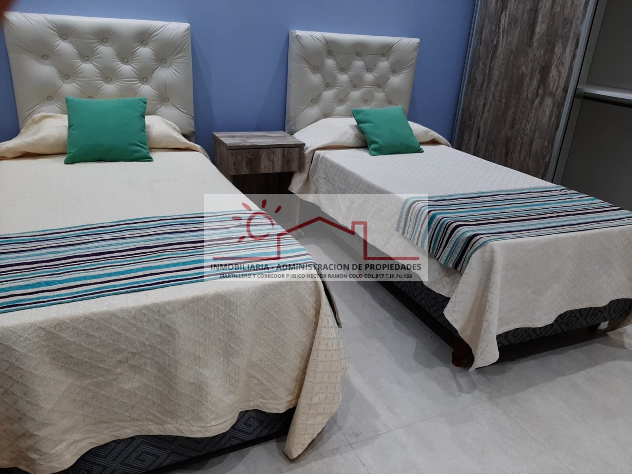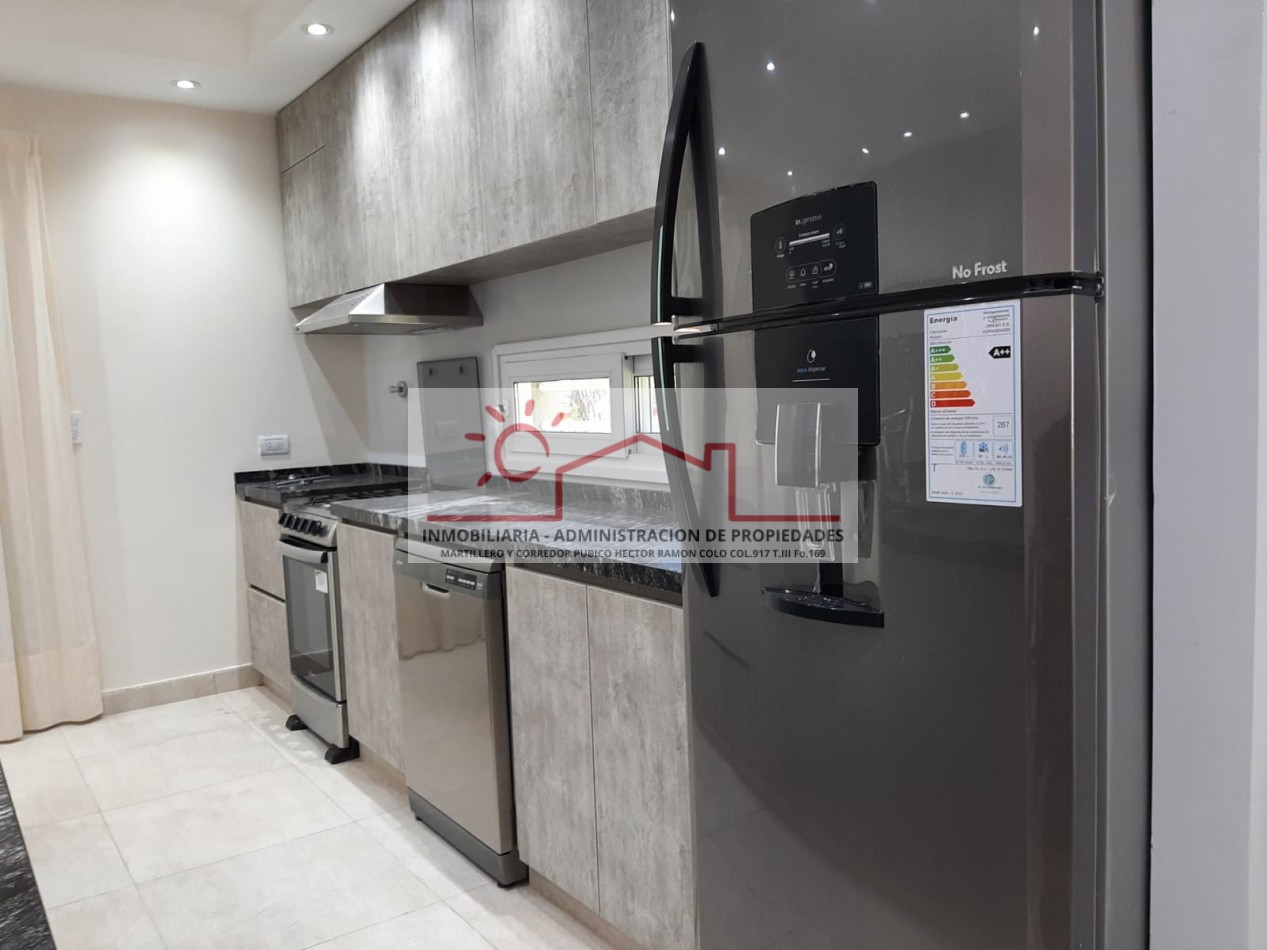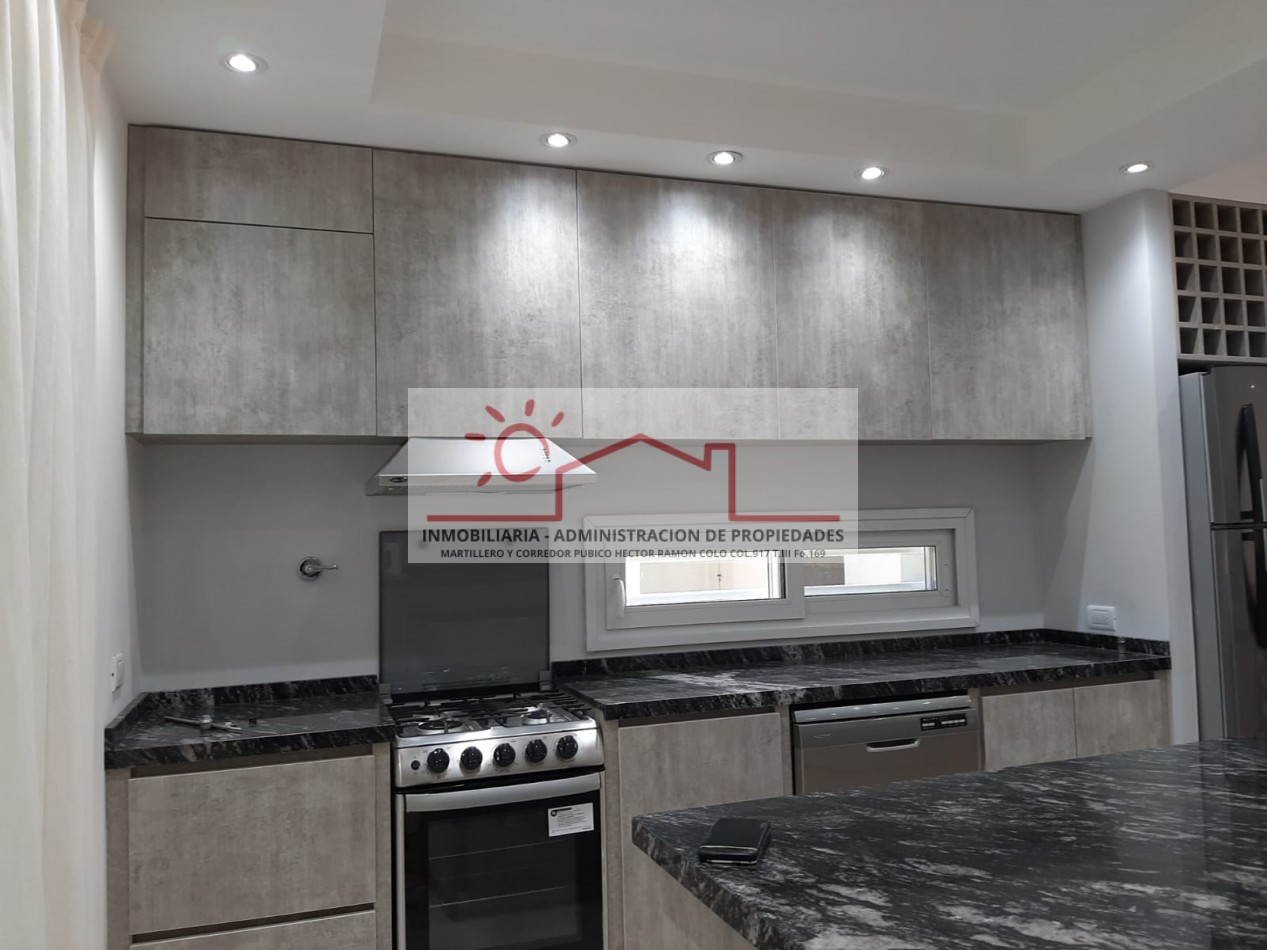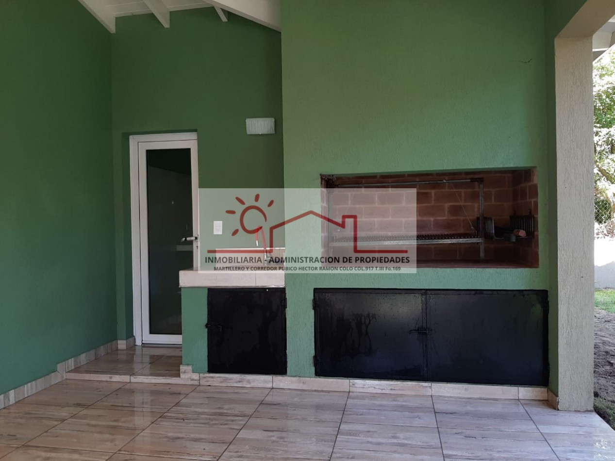 En planta alta dispone de 4 dormitorios (1 matrimonial y 3 con dos camas cada uno). La propiedad ofrece cochera, sistema de alarma y gas natural, combinando comodidad y seguridad durante toda la estadía.