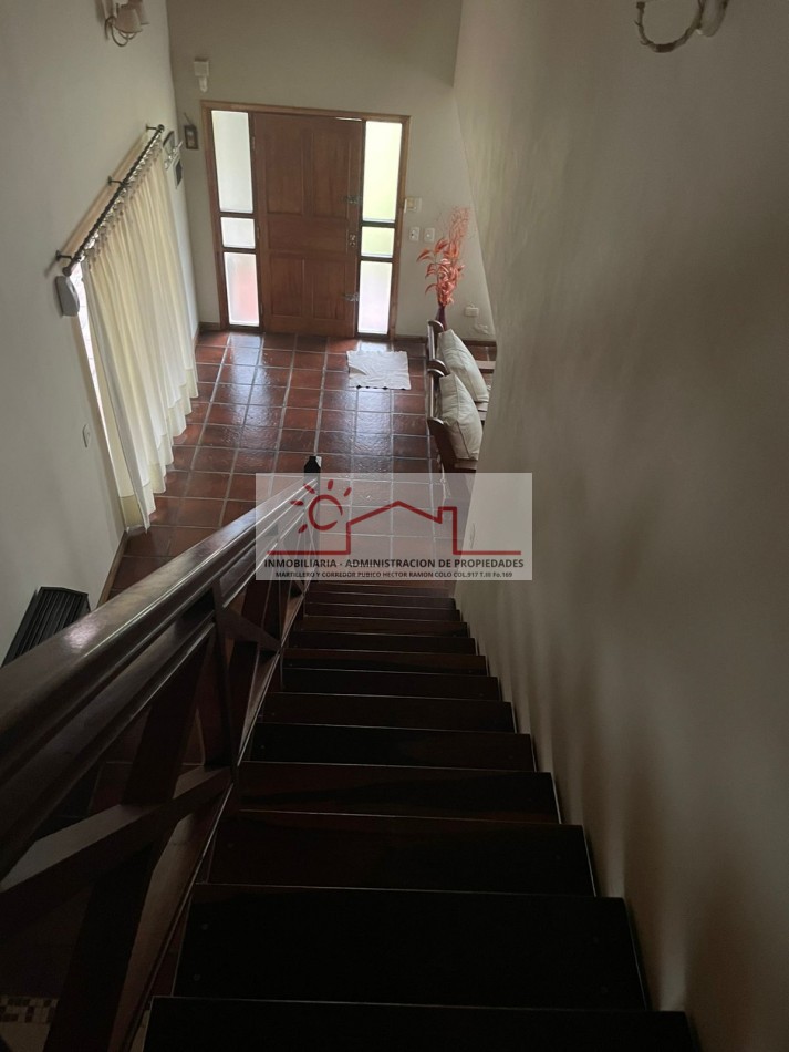 En su planta alta cuenta con dos dormitorios (el principal con cama matrimonial y el otro con 2 camas) ambos en suite.