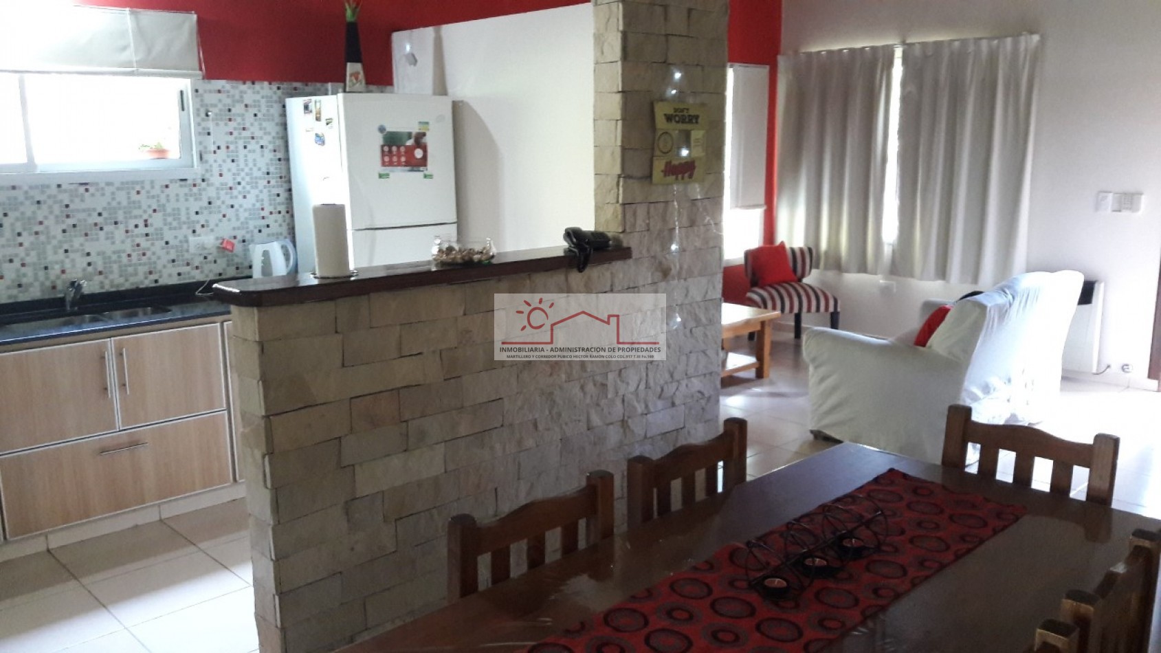 Moderna propiedad de 10 años de antigüedad, en barrio consolidado. Consta de 2 dormitorios, el principal en suite mas otro baño completo con bañera en pasillo, el tercer dormitorio en planta alta. Cocina living comedor integrado separados por una barra. Deck exterior contiguo a la cocina con parrilla. Casa pensada para vivir todo el año.