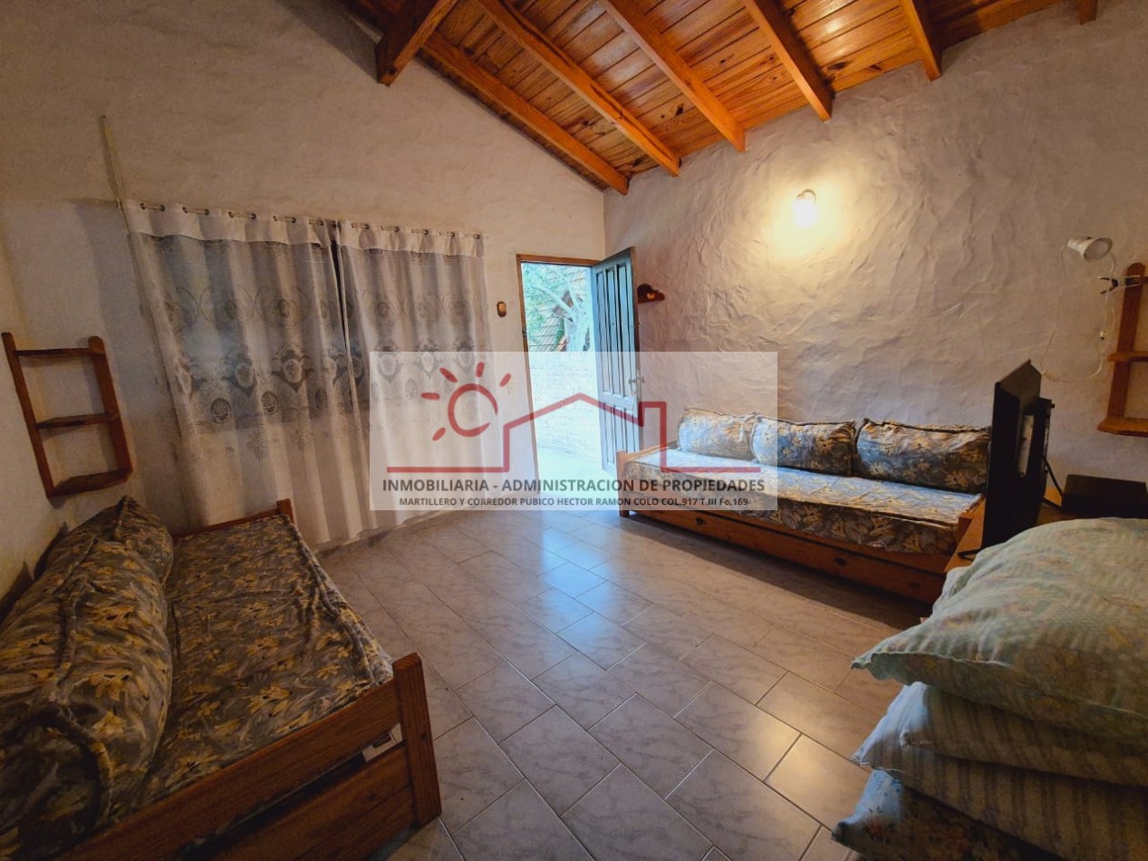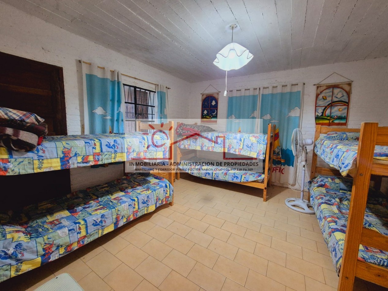 Propiedad amplia y versátil para hasta 14 personas, ideal para familias numerosas. En planta baja, con capacidad para 10 personas, dispone de 3 dormitorios (2 matrimoniales y 1 con cuchetas), 2 baños completos, y un cómodo living comedor integrado a la cocina, además de parrilla, horno de barro y ducha exterior para disfrutar al aire libre.