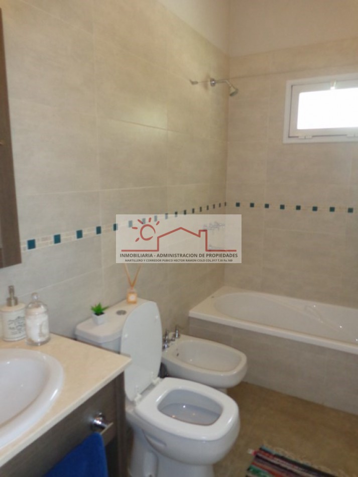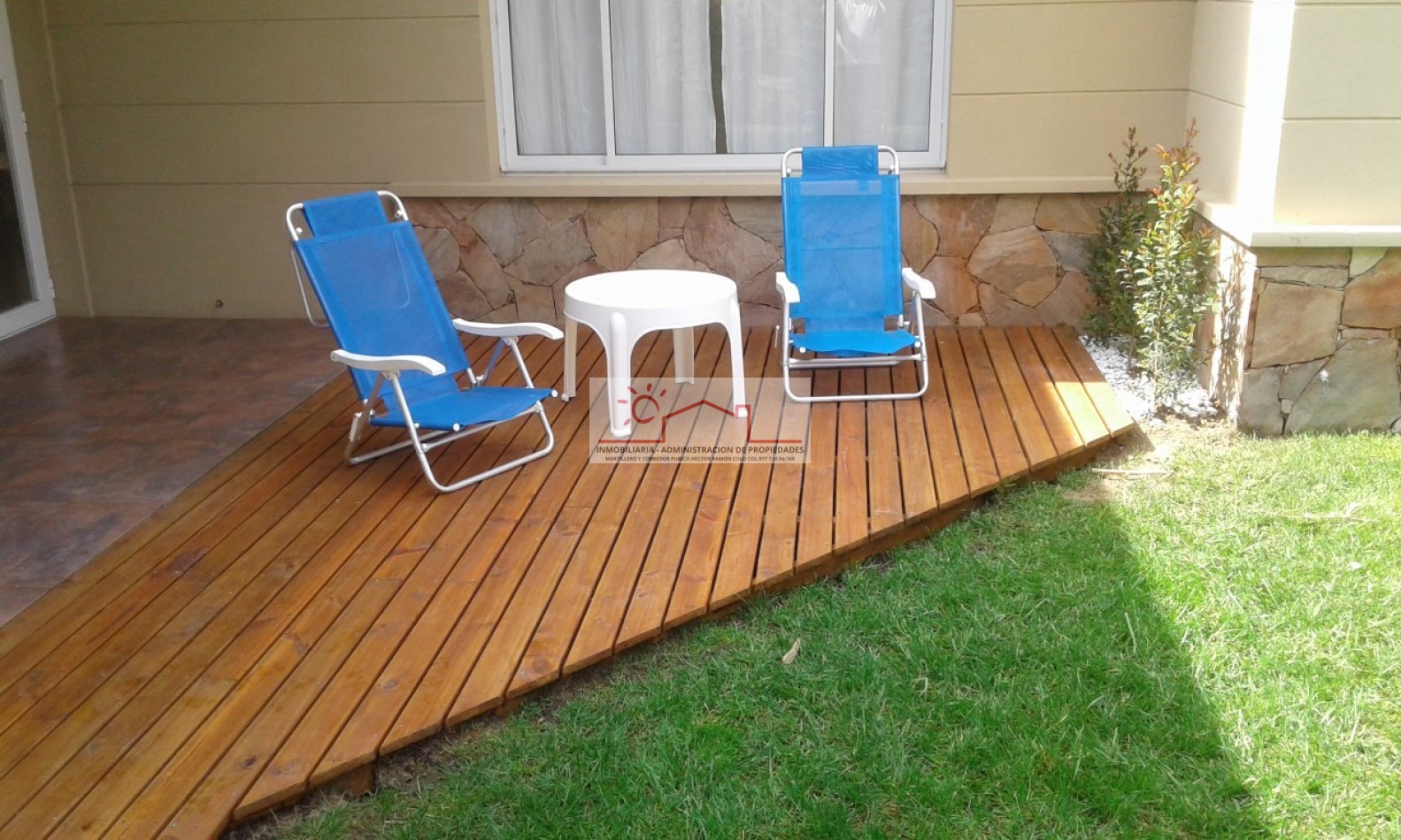 Moderna casa con 2 dormitorios (el principal en suite) mas otro baño completo en pasillo con bañera. Cocina living comedor integrados, deck exterior y galeria con parrilla.