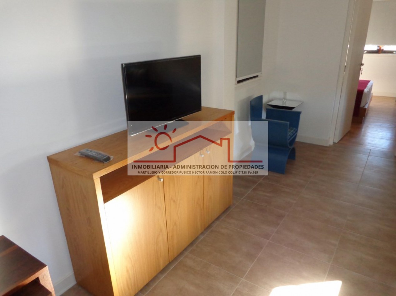 Excelente departamento de 2 ambientes, ideal para una estadía confortable. Cuenta con cocina integrada al living comedor, equipado con diván con carrito, un dormitorio y baño completo. Capacidad para 4 personas.