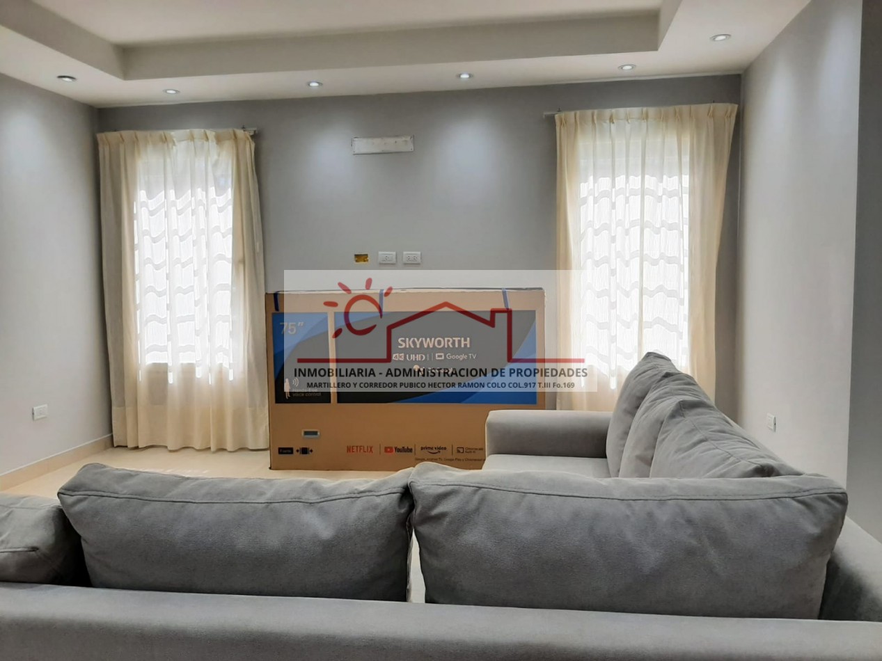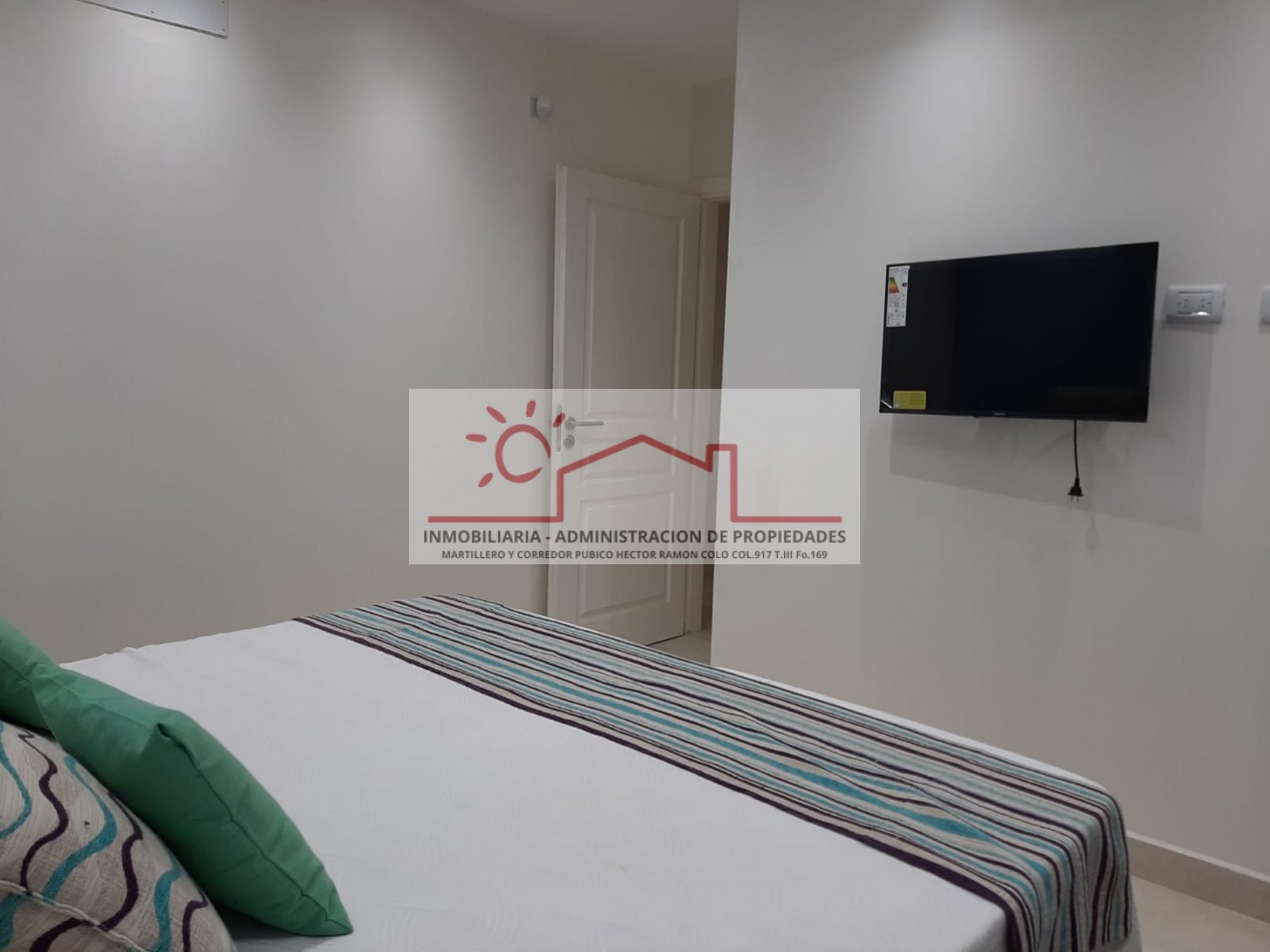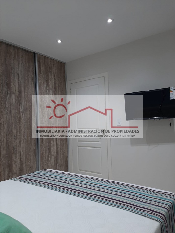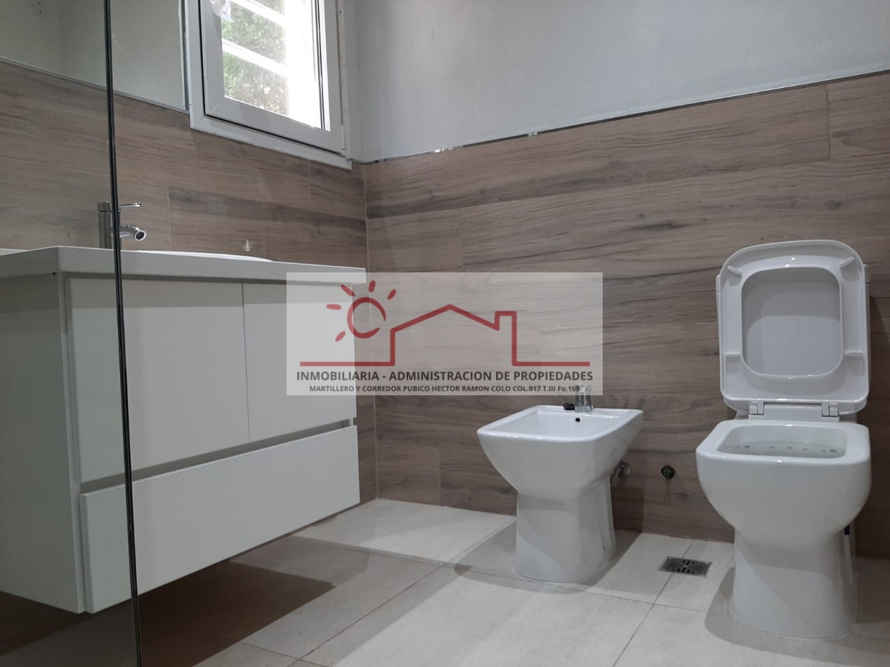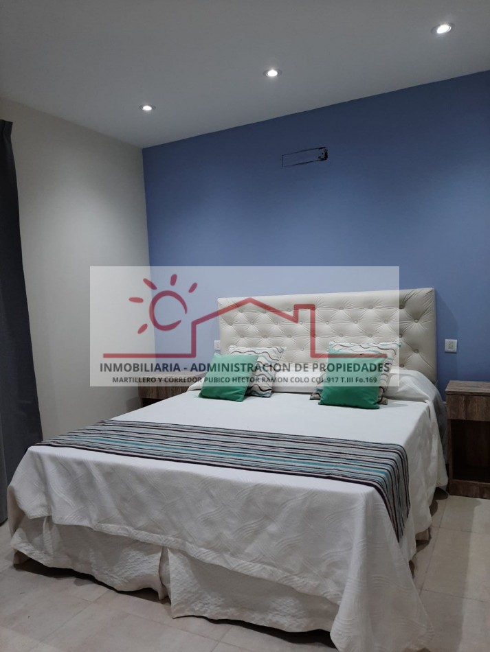 En planta alta dispone de 4 dormitorios (1 matrimonial y 3 con dos camas cada uno). La propiedad ofrece cochera, sistema de alarma y gas natural, combinando comodidad y seguridad durante toda la estadía.